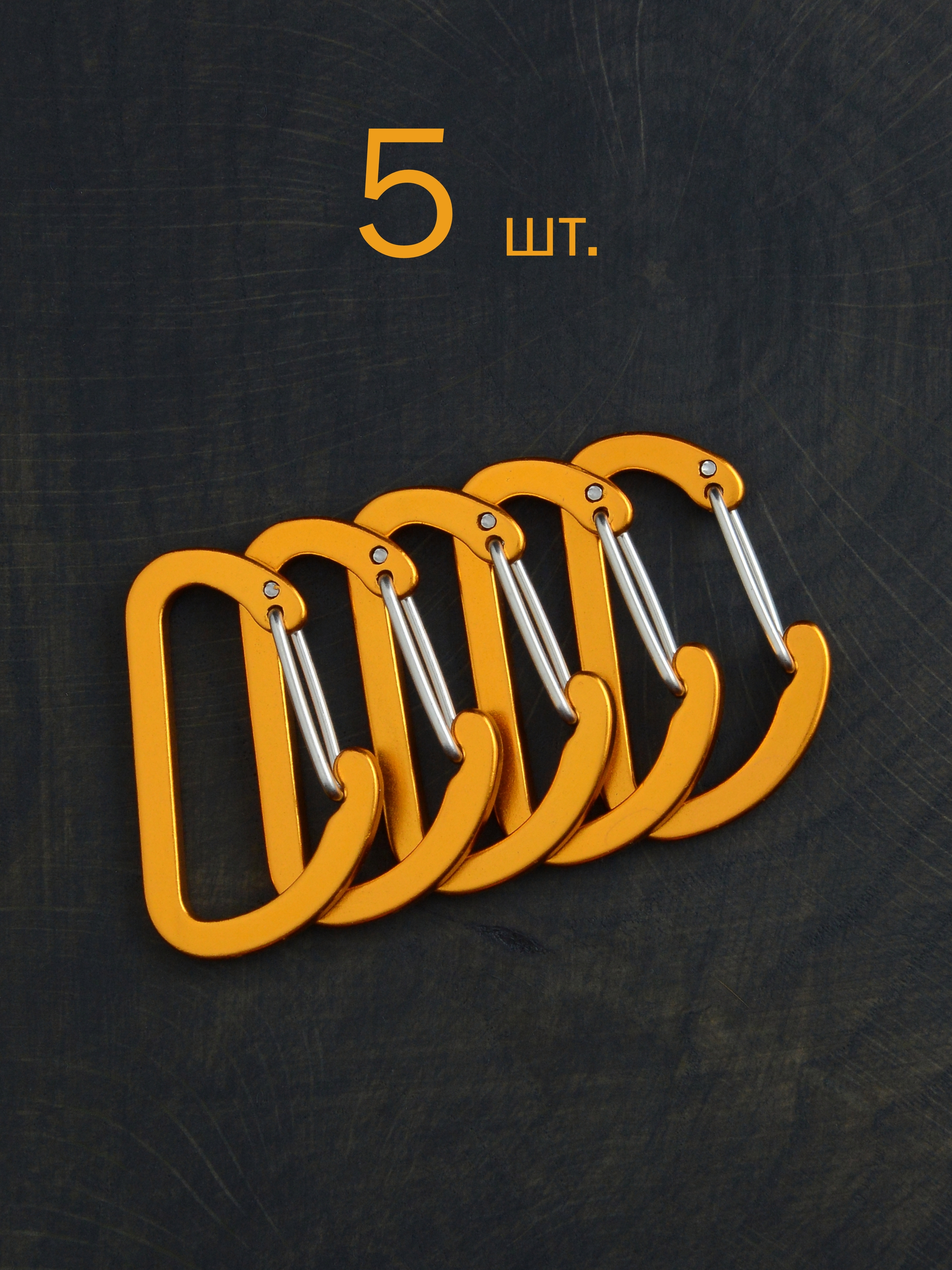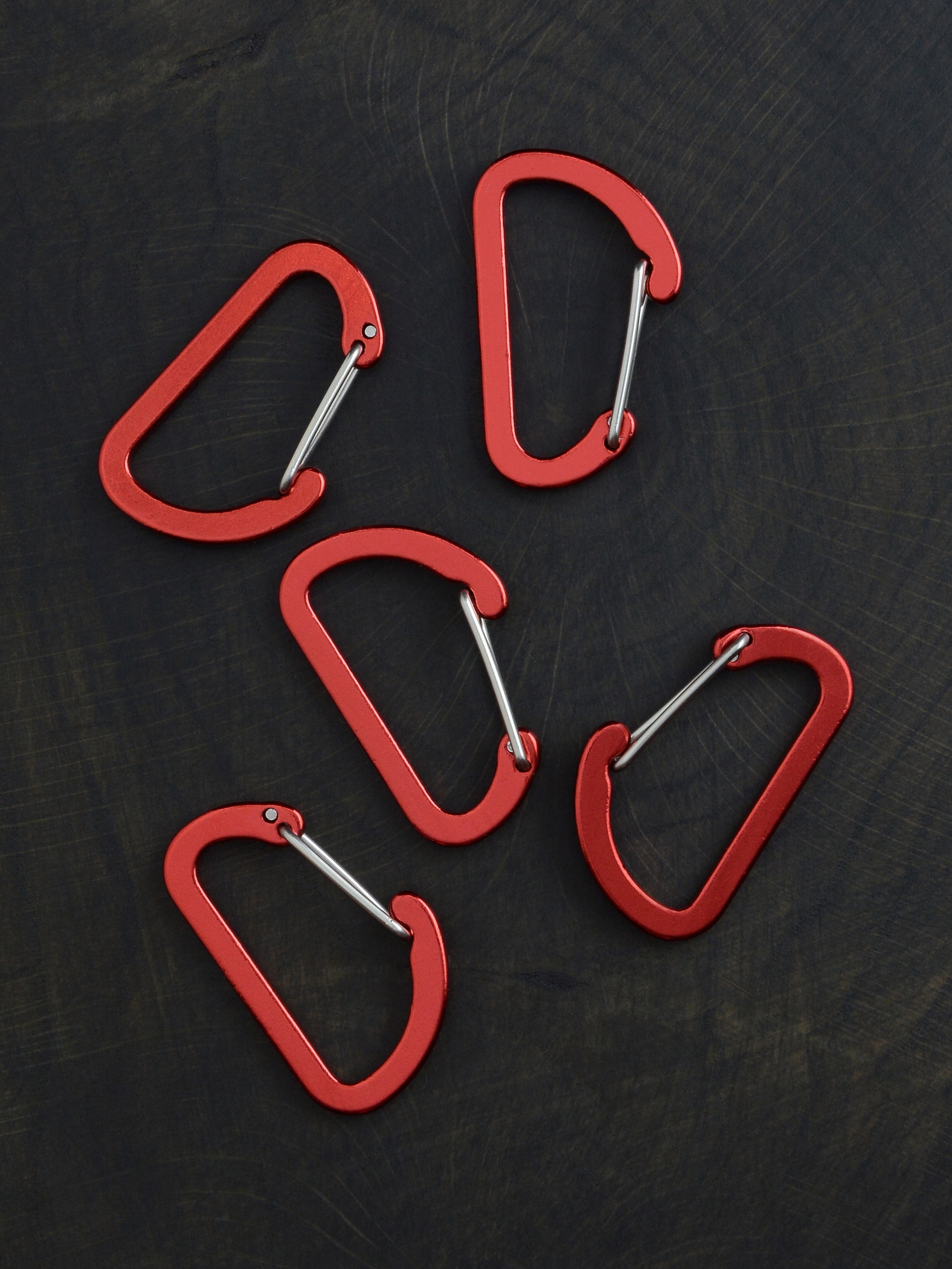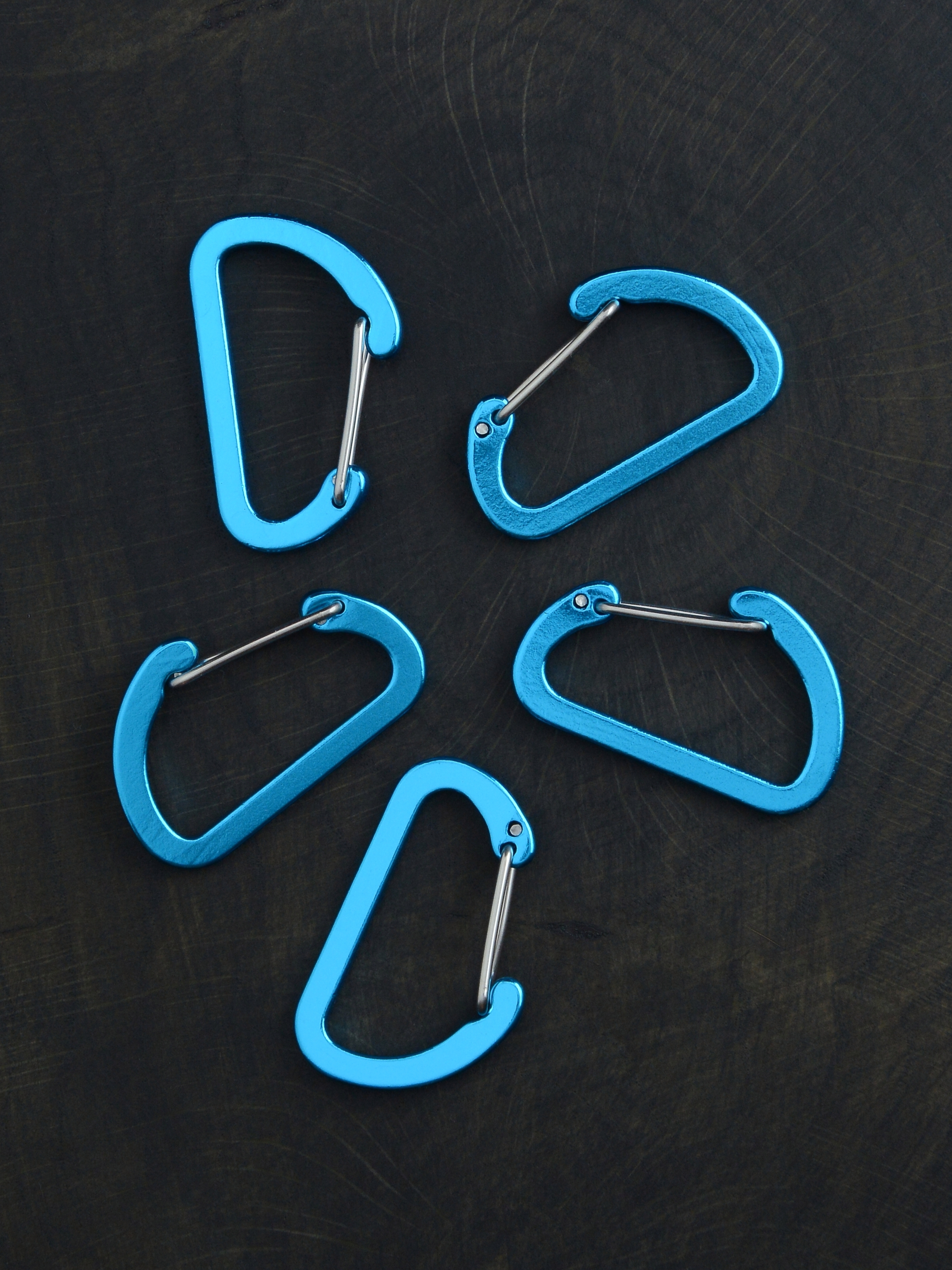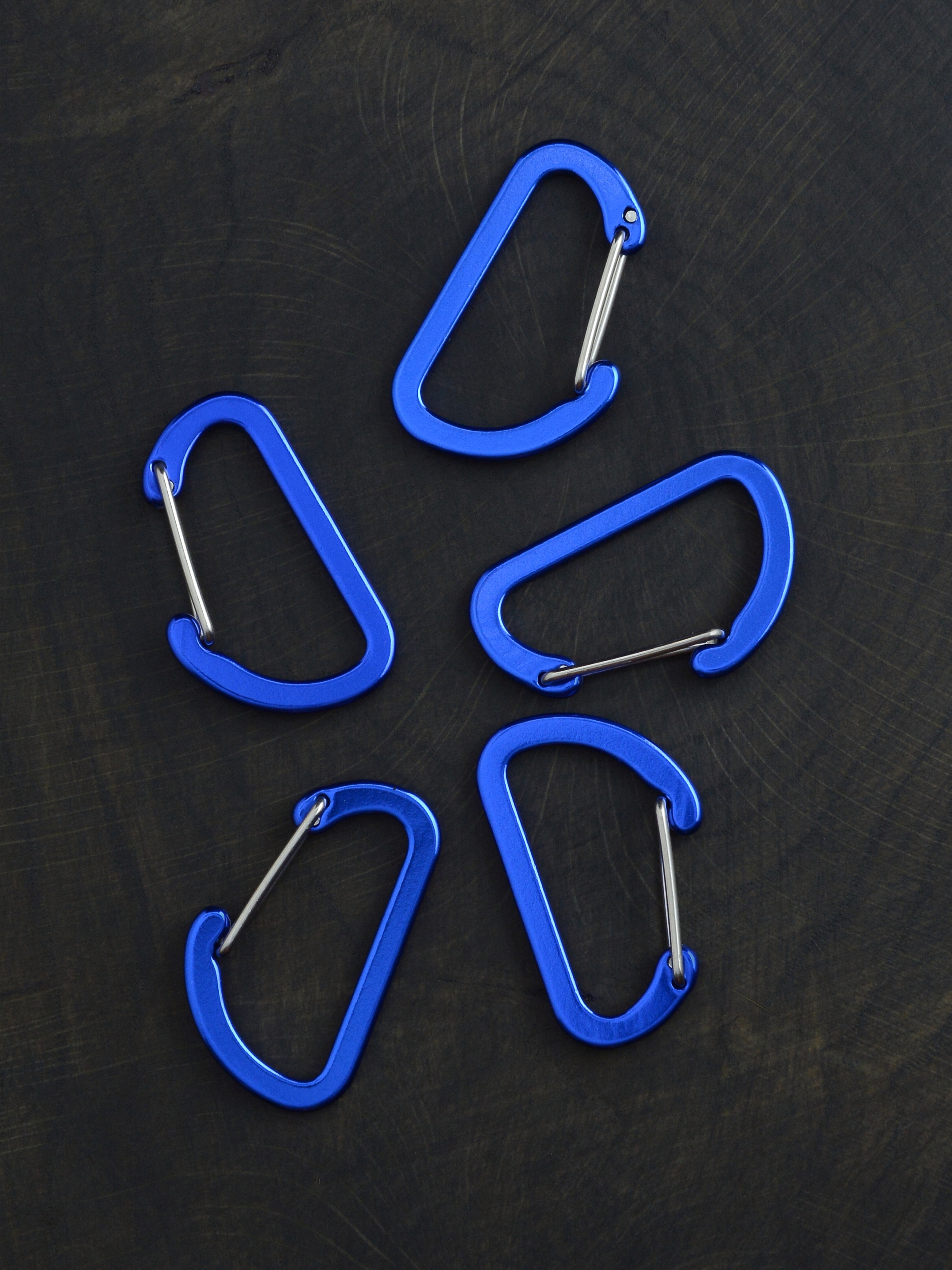 Легкий алюминиевый вспомогательный карабин 40 х 25 мм для крепления небольших вещей, использования в повседневной жизни, для города. Выдерживает нагрузку до 8 кг. Подходит для небольших силовых соединений, подвешивания аксессуаров, легкого снаряжения и оборудования. Такие карабины популярны среди горожан, для сумок, рюкзаков, крепления брелков, игрушек, фонариков, ключей и бейджей. Комплект из 5 карабинов одого цвета.