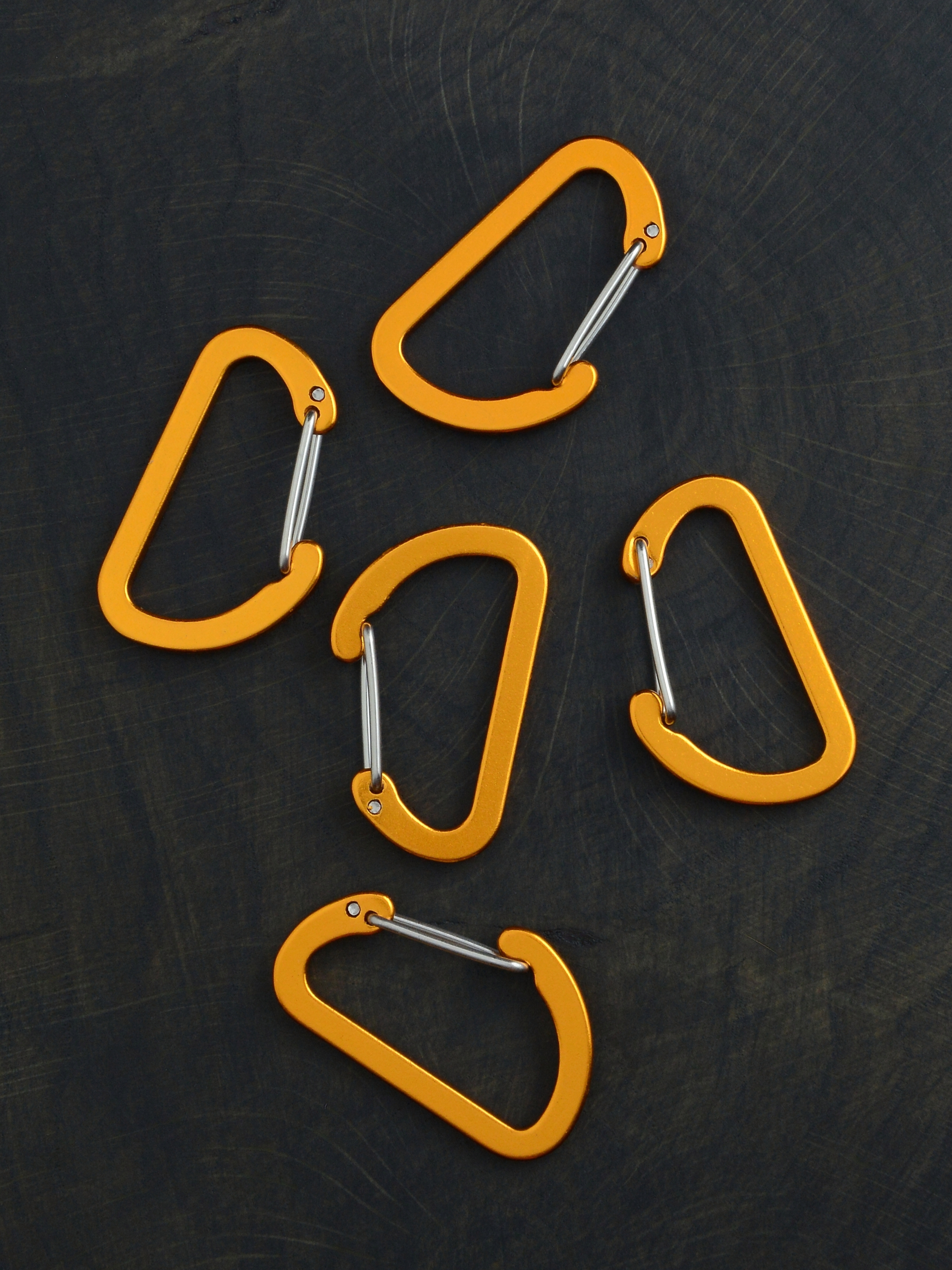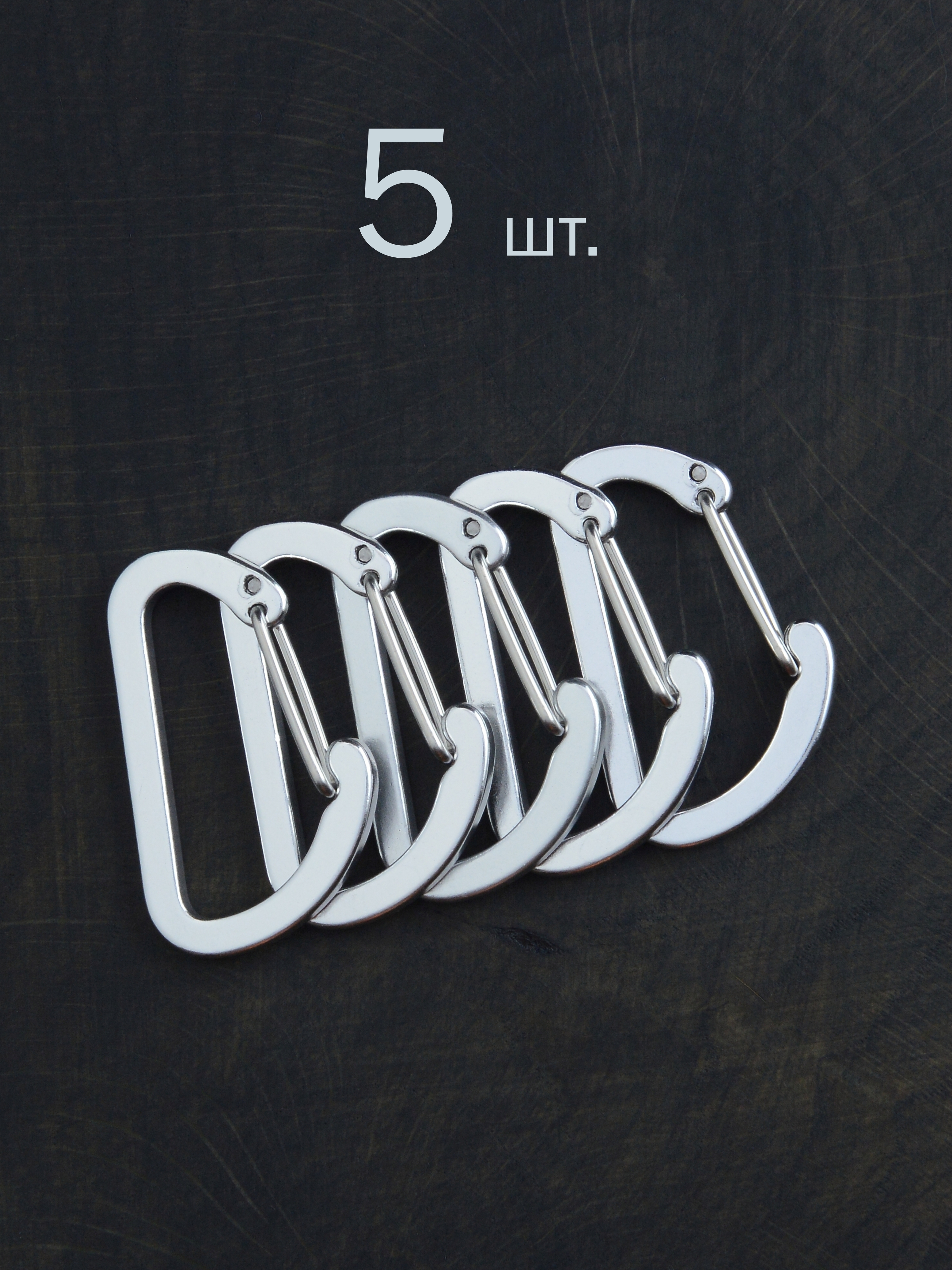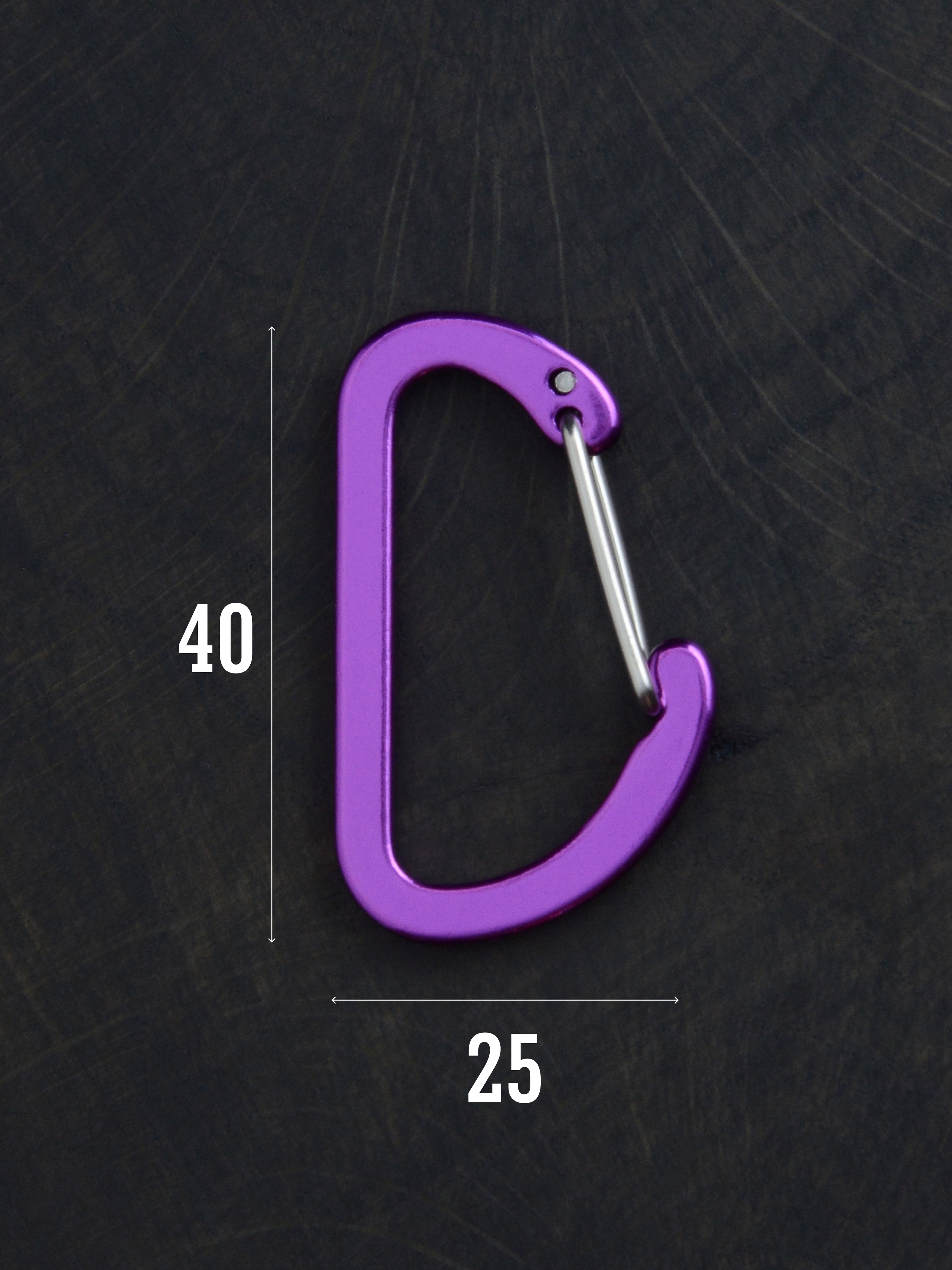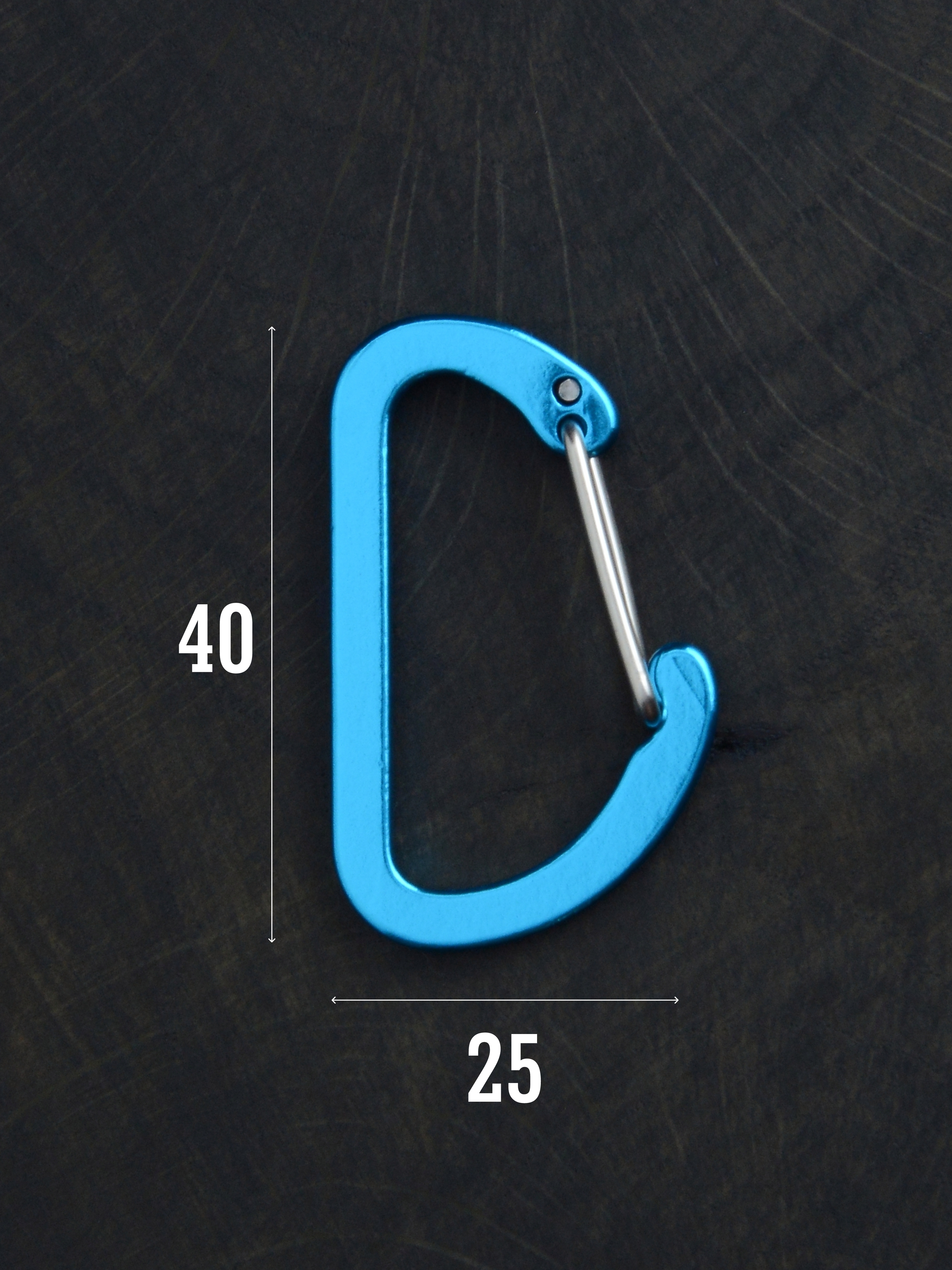 Легкий алюминиевый вспомогательный карабин 40 х 25 мм для крепления небольших вещей, использования в повседневной жизни, для города. Выдерживает нагрузку до 8 кг. Подходит для небольших силовых соединений, подвешивания аксессуаров, легкого снаряжения и оборудования. Такие карабины популярны среди горожан, для сумок, рюкзаков, крепления брелков, игрушек, фонариков, ключей и бейджей. Комплект из 5 карабинов одого цвета.