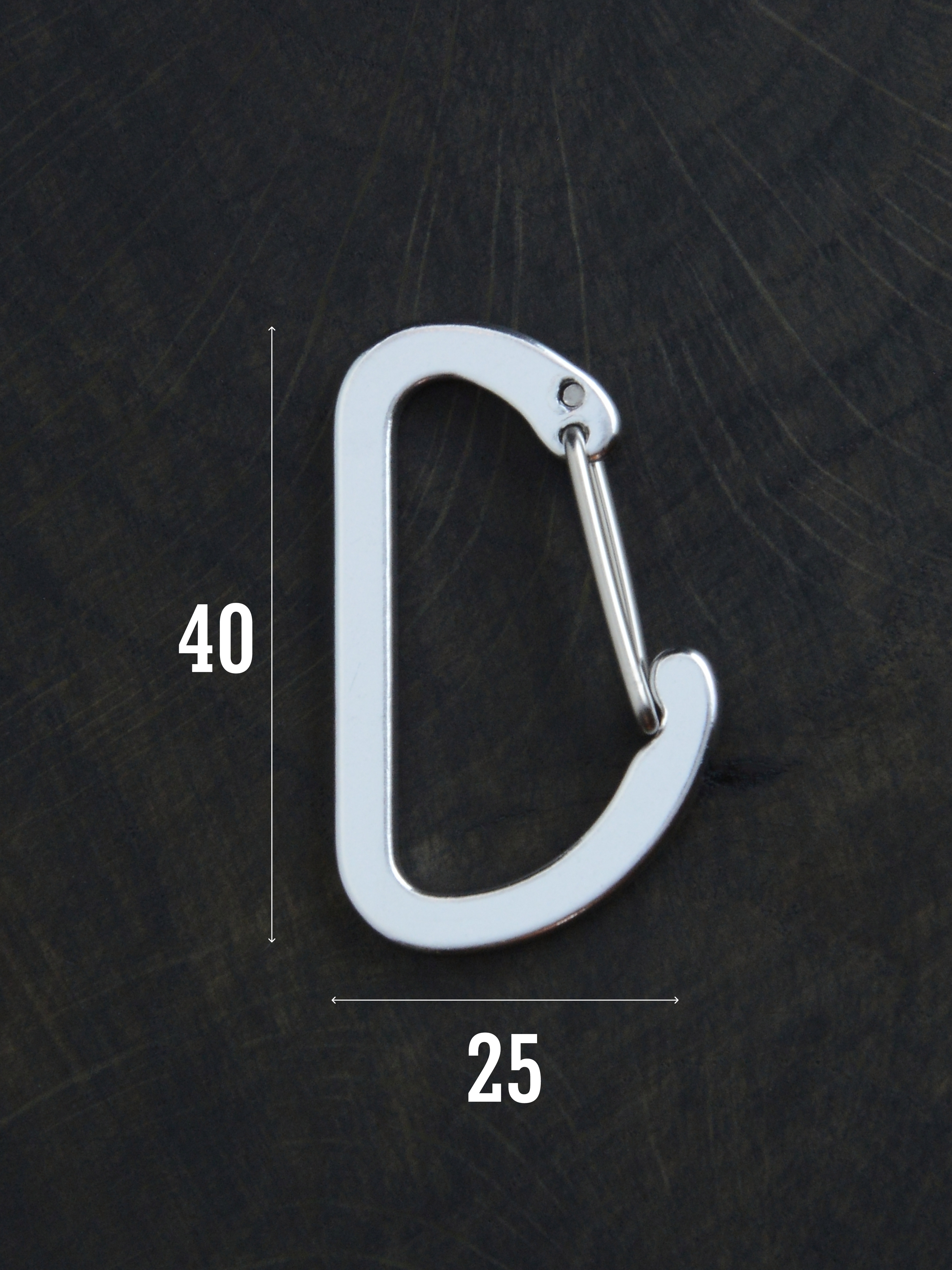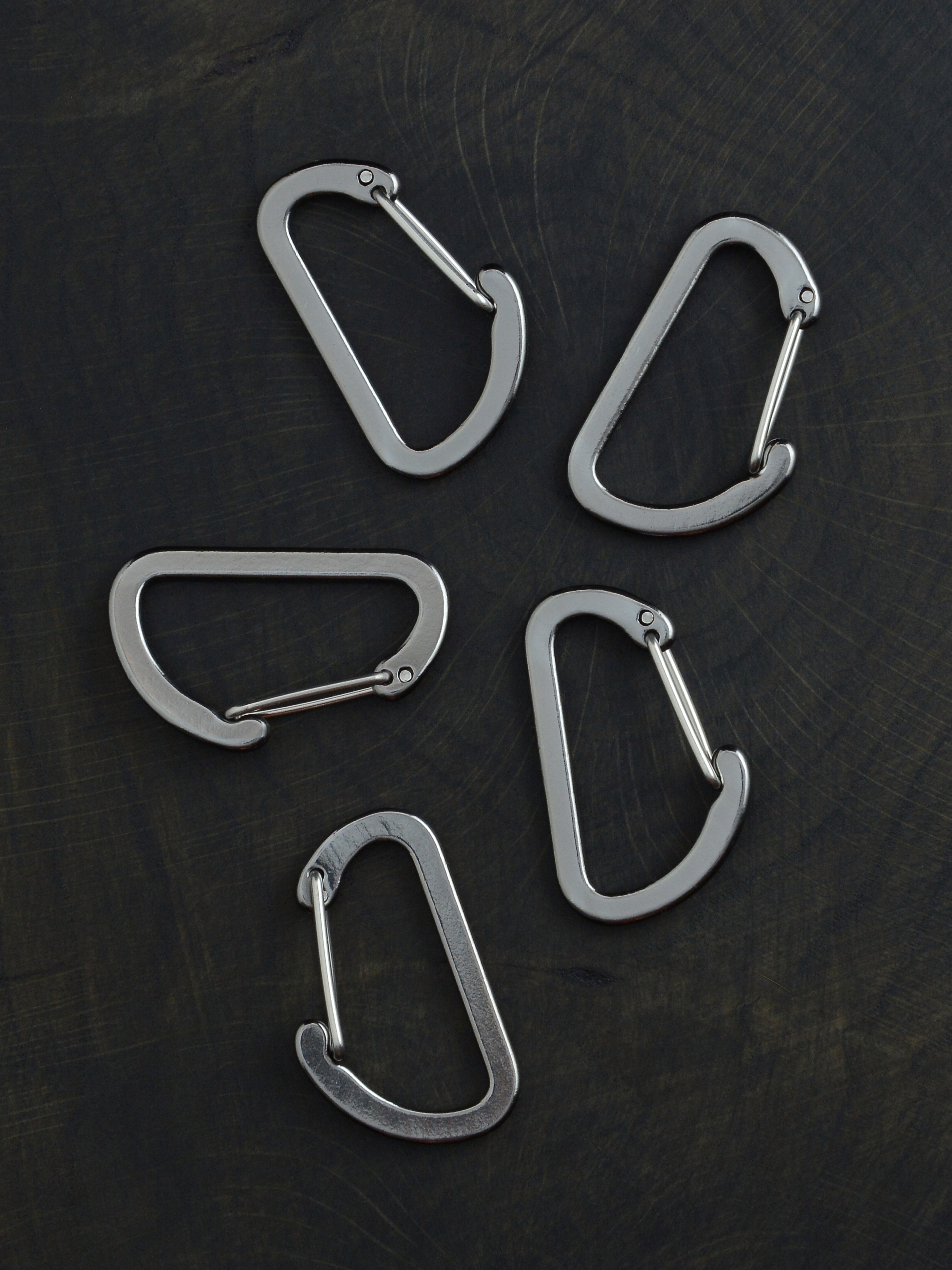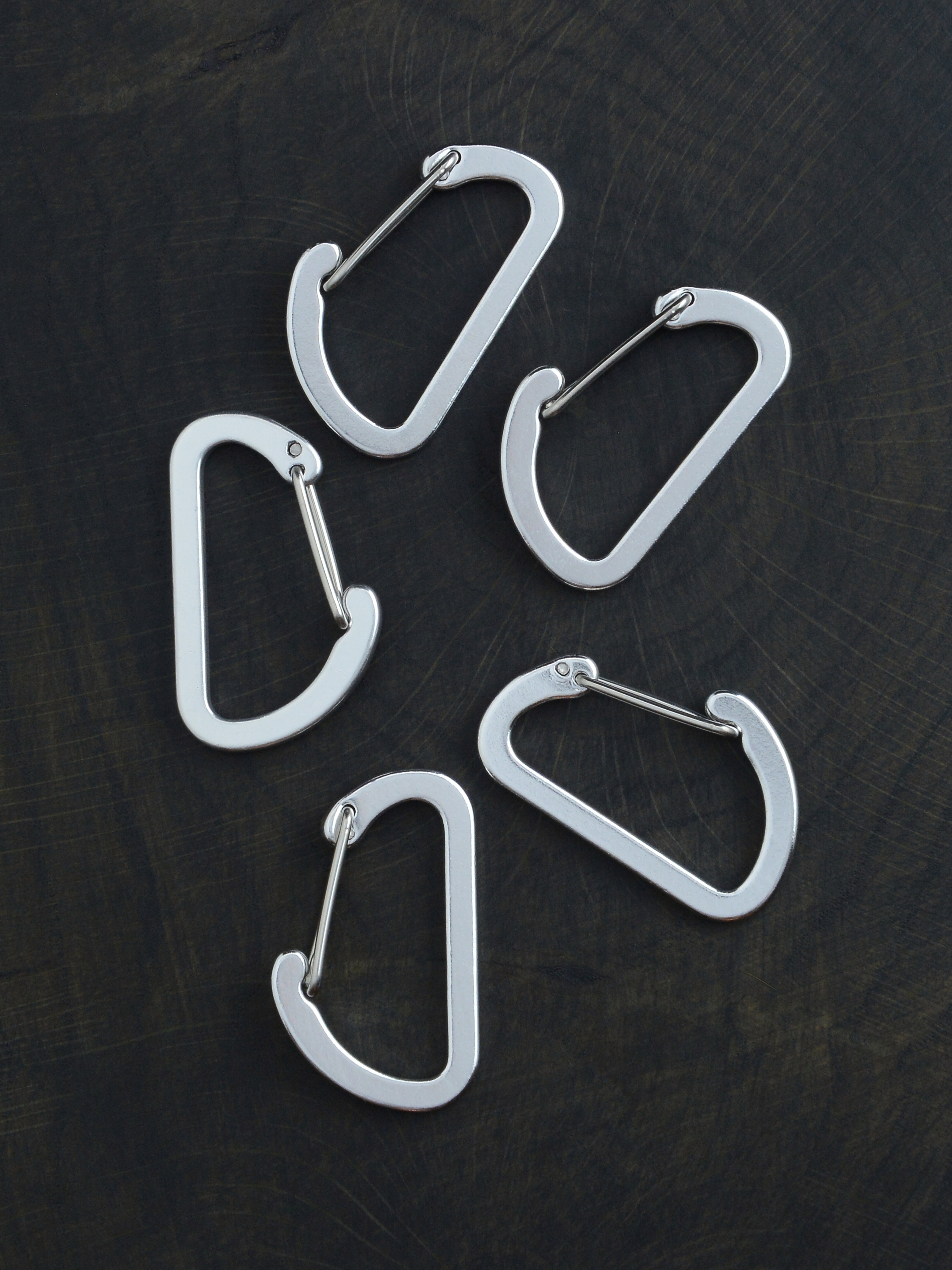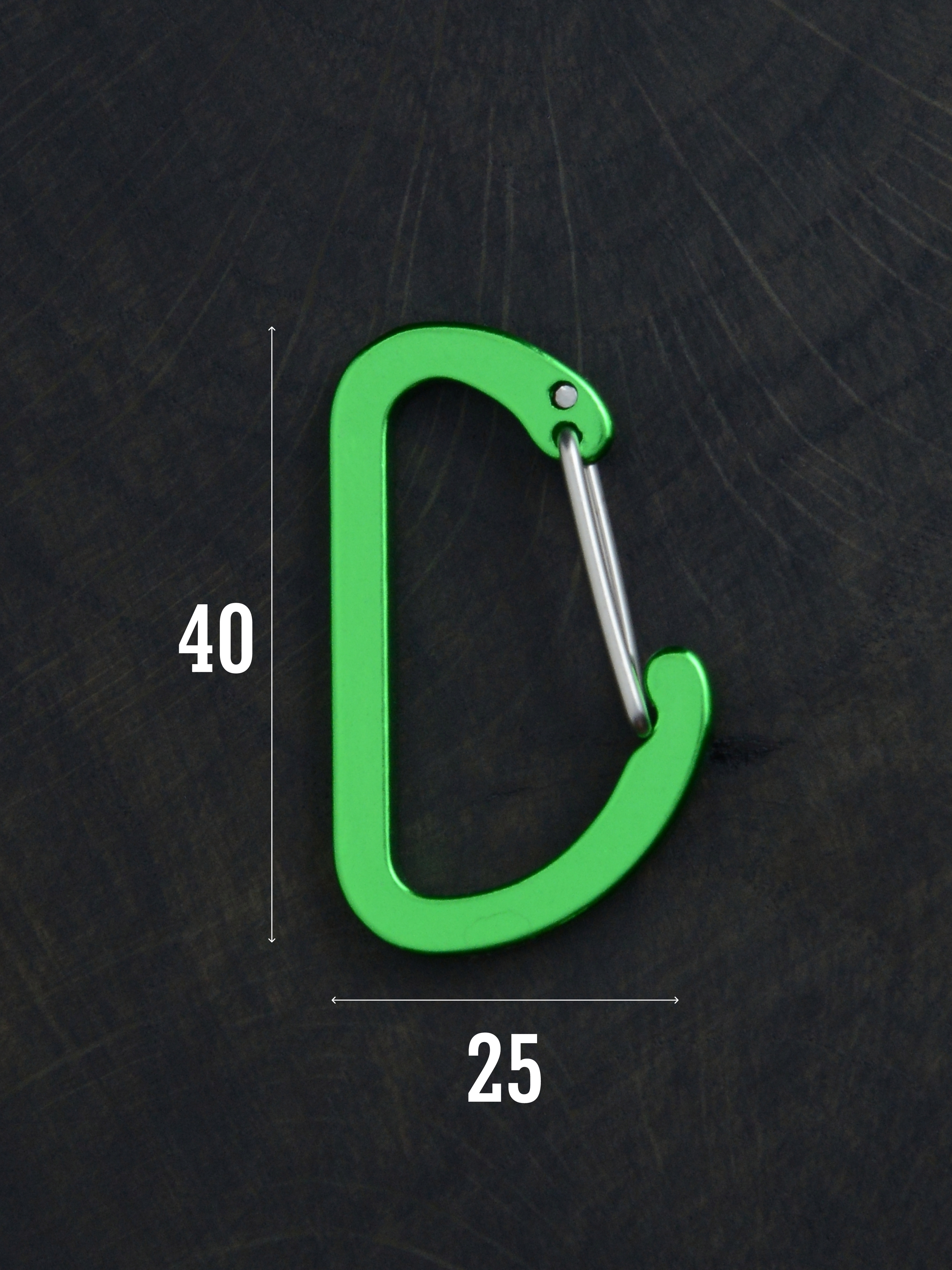 Легкий алюминиевый вспомогательный карабин 40 х 25 мм для крепления небольших вещей, использования в повседневной жизни, для города. Выдерживает нагрузку до 8 кг. Подходит для небольших силовых соединений, подвешивания аксессуаров, легкого снаряжения и оборудования. Такие карабины популярны среди горожан, для сумок, рюкзаков, крепления брелков, игрушек, фонариков, ключей и бейджей. Комплект из 5 карабинов одого цвета.