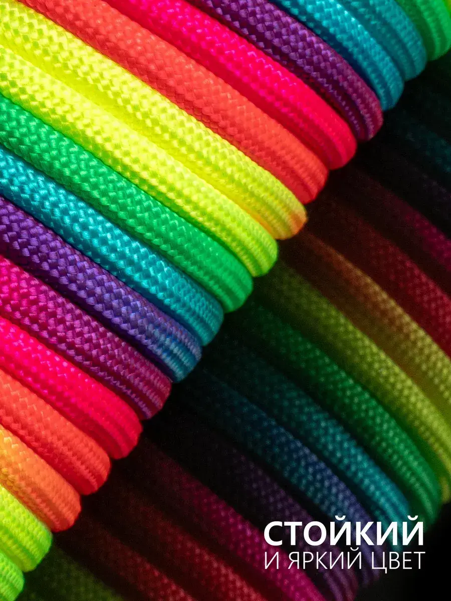Паракорд для плетения 7 жил - легкий, прочный плетеный шнур 4 мм с сердечником, произведенный по стандартам американского паракорд 550, выдерживает нагрузку до 280 кг. Паракорд 4 мм имеет округлое сечение и плотную оболочку с тонкой текстурой поверхности, высокую износостойкость, не ворсится и не распушается после активного трения. Полипропиленовая нить в составе шнура не тянется и не линяет, не выцветает, отлично противостоит воздействию кислот, щелочей и растворителей. Шнур полипропиленовый 4 мм не подвержен гниению и разрушительному действию грибков и плесени при повышенной влажности, не выгорает на солнце и хорошо переносит все природные условия. Нейлоновая нить сердечника может использоваться для разведения костра, зашивания ран, как нейлоновый шнур для удочки и изготовления приманок. При необходимости сердечник легко удаляется. Шнур с сердечником используется как снаряжение для охоты и рыбалки, как тактическая веревка в туристическом снаряжении для крепления, связки и фиксации грузов, как веревка 4 мм в походном наборе, как элемент спортивного снаряжения в велоспорте, мотоспорте, и просто в домашнем хозяйстве. В походе туристическая веревка это универсальный шнур для крепления палаток и тентов, бельевой веревки, гамака, походной утвари, изготовления тактического браслета для выживания, для оплетки рукоятей ножей и топоров. Также Вы можете использовать эту веревку 4 мм для рукоделия, шнур для творчества, как шнур для плетения браслетов, темляков, ремней и ремешков для часов, как шнур для макраме 4 мм и декоративных изделий для дома и сада. Часто шнур нейлоновый для браслетов используется для плетения ошейников, поводков, адресников для собак и кошек. Из браслет паракорда плетут ручки на рюкзаки, гайтаны. Паракорд для плетения браслетов представлен в нашем магазине Hobbylive в широком ассортименте расцветок. Удобно Шнур полипропиленовый иметь в багажнике Вашей машины как многофункциональную веревку 20 в 1. Толщина 4 мм.