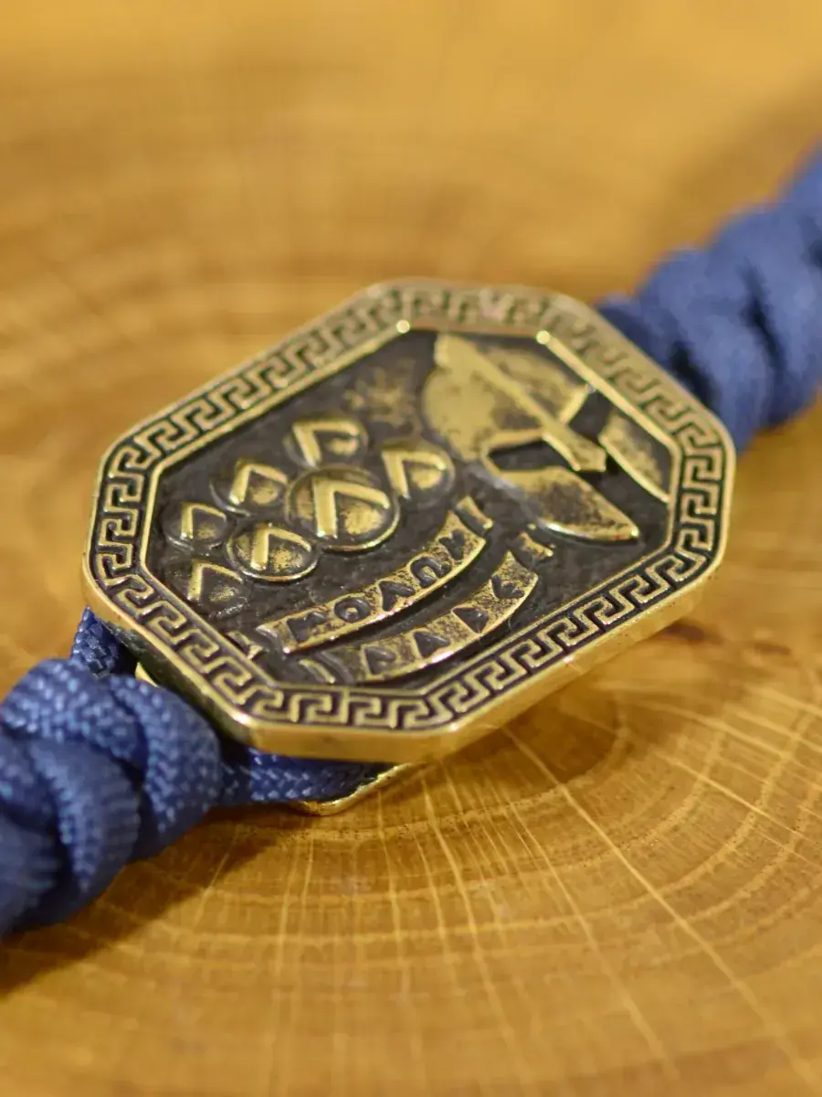 Замок для браслета с символикой Спарты и её легендарных воинов! Ручная работа. Латунь с чернением Размер 36 х 28 х 11 мм Отверстия по 5,5 мм. Вес около 20 г.
